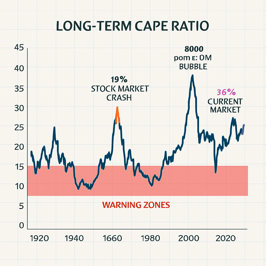 2024년 12월 S&P 500의 CAPE 비율이 37.9에 달했는데, 이는 장기 평균 17.6을 크게 상회하는 수치다. 역사적으로 이 수준을 넘어선 것은 닷컴 버블(2000년)과 2021년뿐이었다.