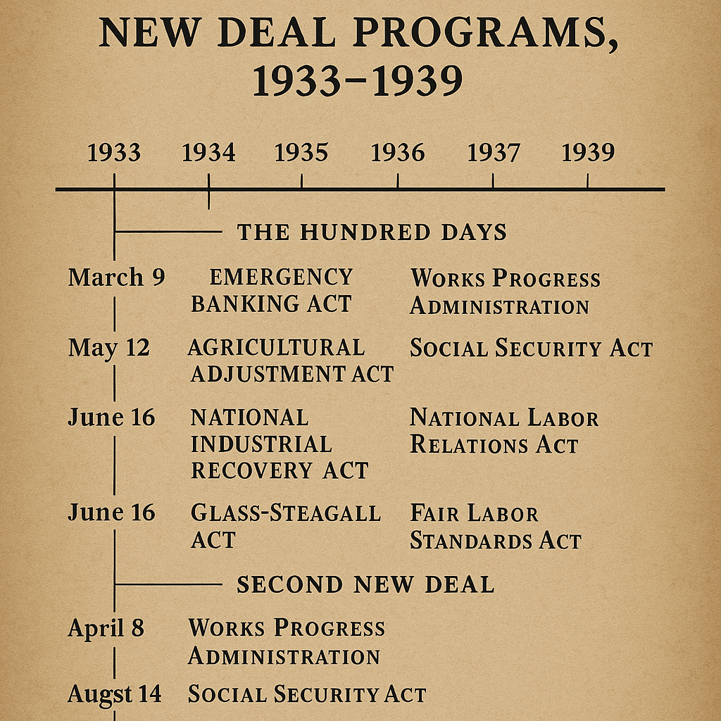 루즈벨트가 취임 직후 추진한 **"100일 법안(The Hundred Days)"**은 대공황에 대한 즉각적 대응이었다. 1933년 3월 9일부터 6월 16일까지 100일 동안 15개의 주요 법안이 의회를 통과했다³. 이는 미국 입법사상 유례없는 속도였다.