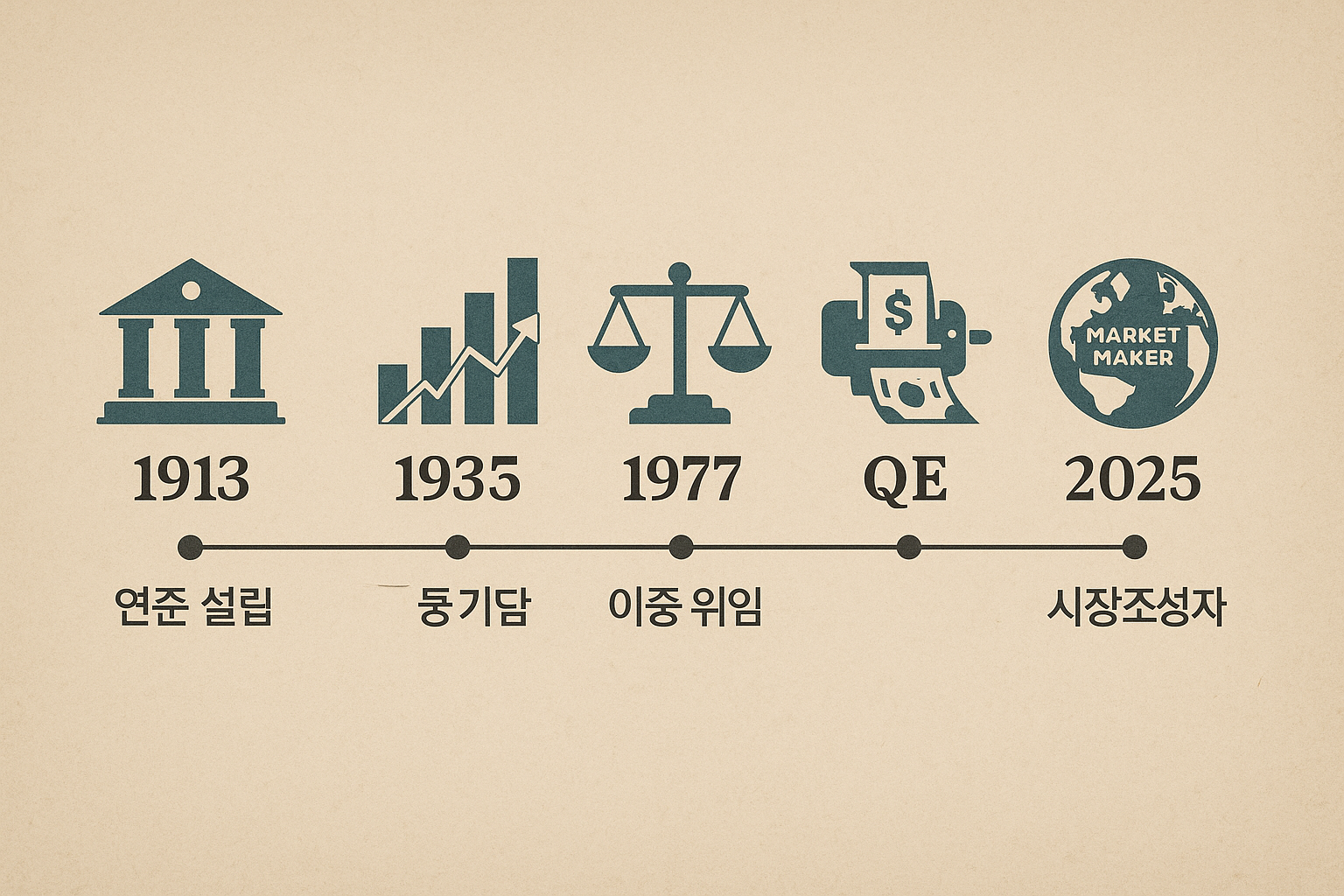 고용안정화가 연준의 명시적 목표로 추가된 것은 1977년이지만, 그 철학적 토대는 대공황에서 나왔다. **"연준은 물가 안정뿐만 아니라 완전고용도 추구해야 한다"**는 이중 위임(Dual Mandate) 개념이 확립되었다¹³.