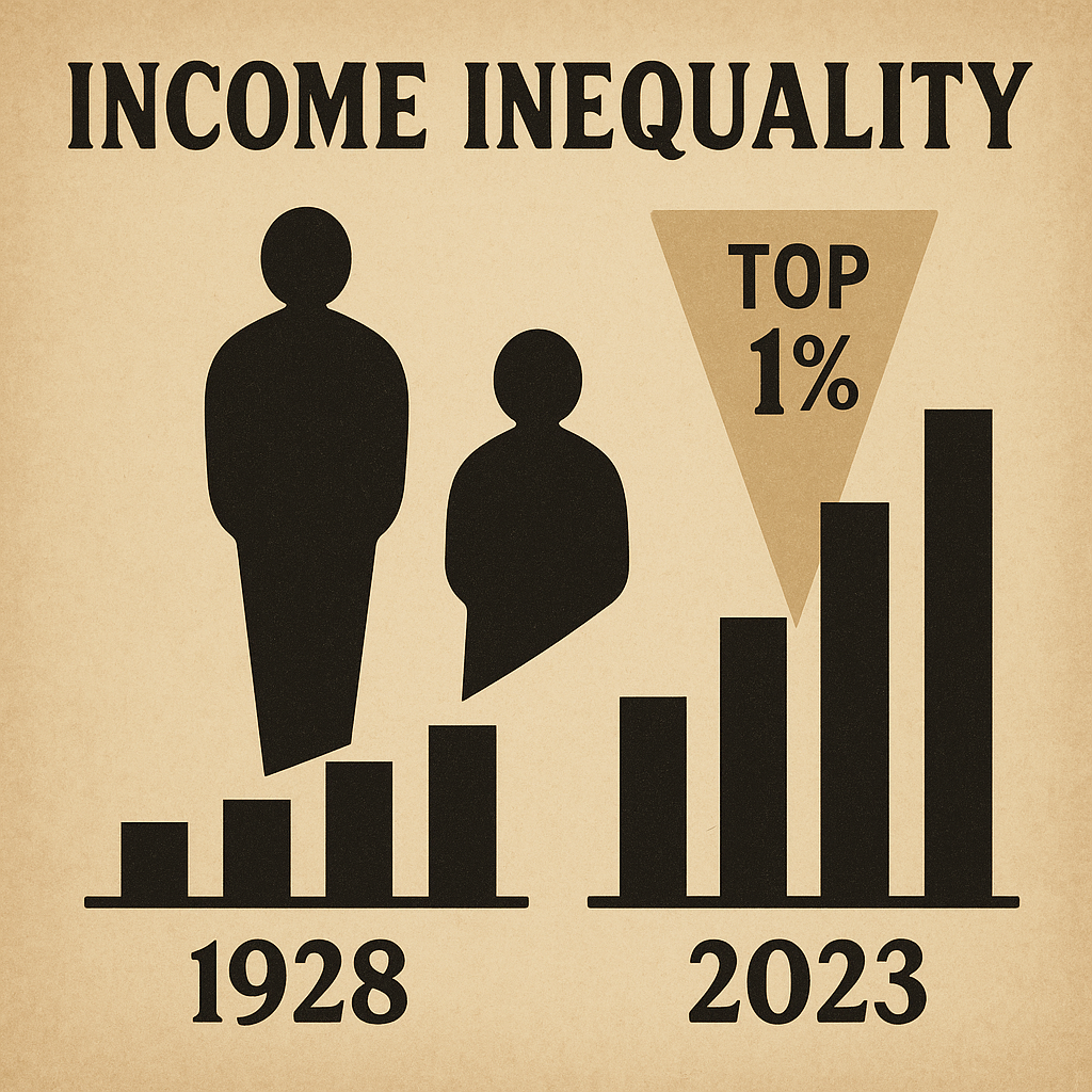 소득 불평등 측면에서 현재 상황은 1920년대보다도 심각하다. 1편에서 언급했듯 1928년 상위 1%가 전체 소득의 23.9%를 차지했지만, 2023년 현재는 32.1%에 달한다³. 이는 통계 작성 이래 역사상 최고 수준이다.