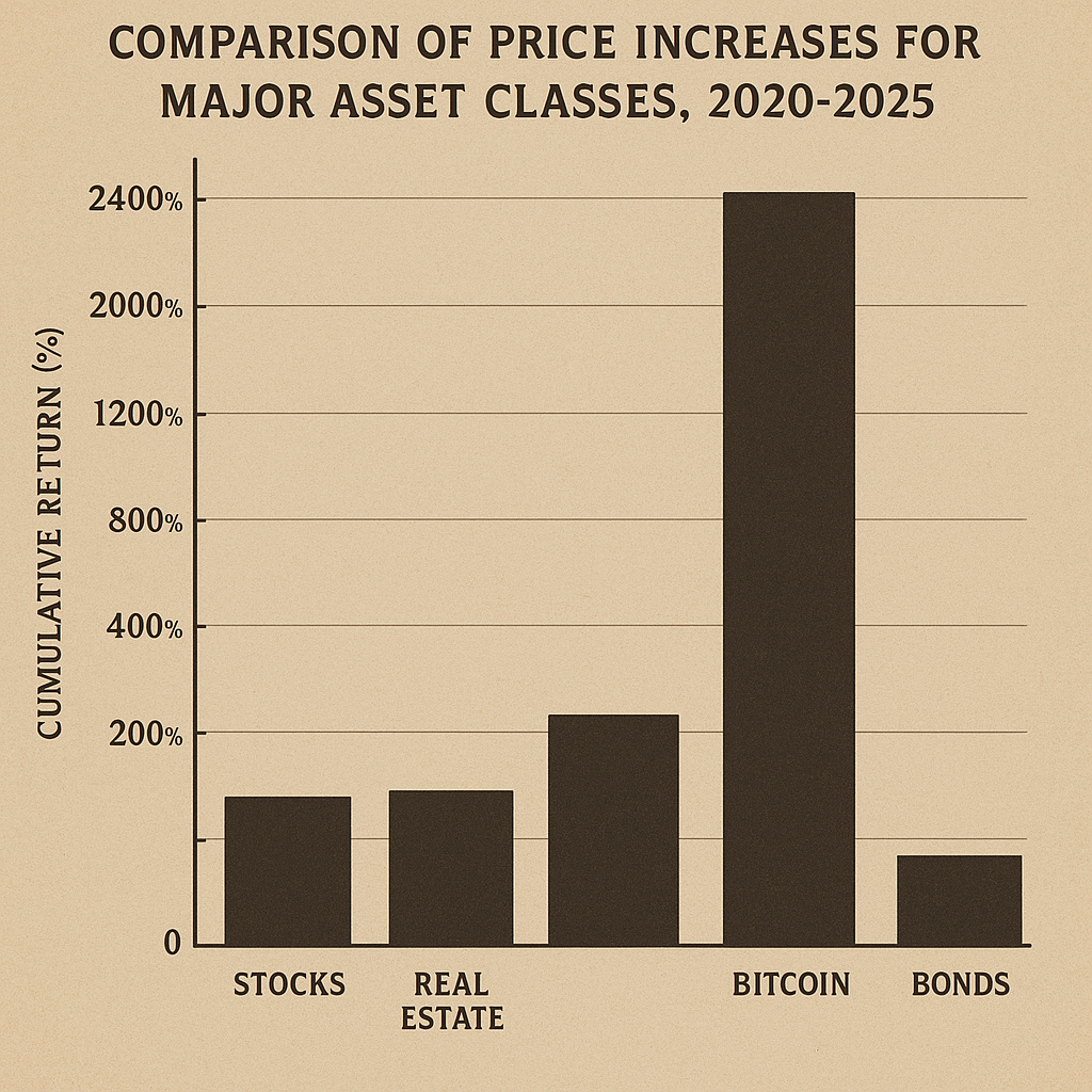 비트코인의 경우 더욱 극단적이다. 2020년 3월 3,800달러에서 2024년 11월 99,000달러까지 2,500% 상승했다¹⁰. 이는 1920년대 주식시장 버블을 훨씬 능가하는 수준이다.