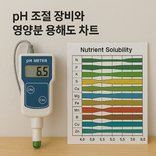 상추 수경재배의 최적 pH는 5.5-6.0입니다[8]. 이 범위에서 필수 영양분의 용해도와 흡수율이 최대화됩니다.