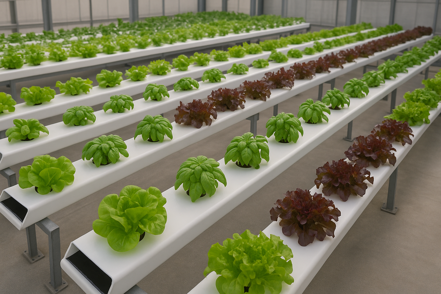 박막형 수경재배시스템(NFT)은 상추나 바질처럼 생육기간이 짧은 채소를 재배할 때 폭넓게 사용됩니다. 박막형 수경재배는 식물 양액을 좁은 파이프라인, 듀브, 재배상자 등 뿌리가 위치한 곳으로 끊임없이 흘려주는 시스템입니다.